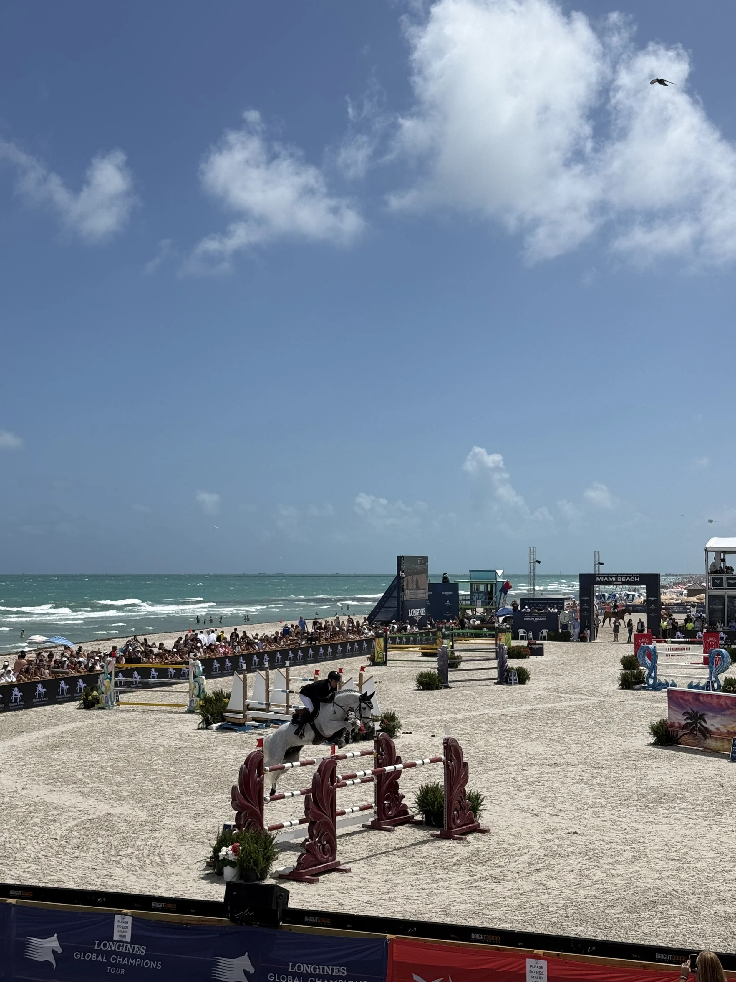 Then I saw the little stables they had set up on the sand and the word Longines Global Champions Tour Miami Beach outside and immediately thought: no freaking way.